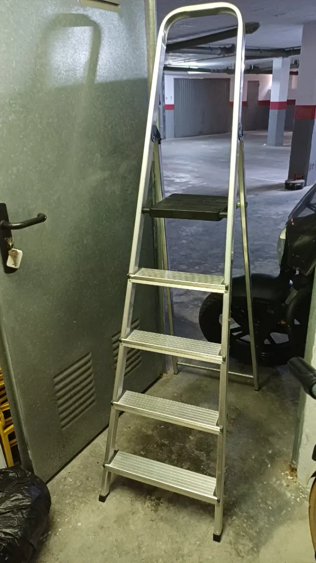 Detalles del productoEscalera de aluminio plegable, ideal para tener en casa o en el garaje. Es ligera y fácil de guardar.