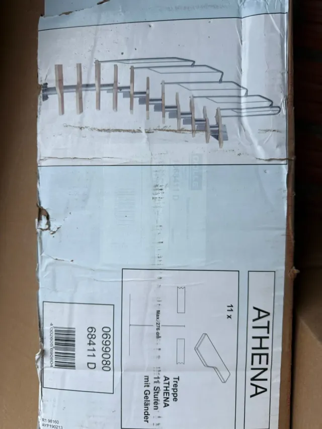 Escalera de interior ATHENA con 11 peldaños y barandilla.