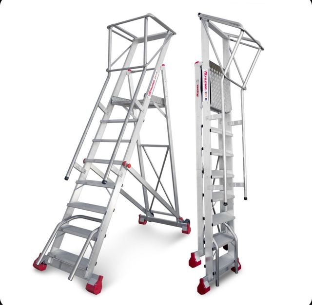 Escalera de aluminio en buen estado, ideal para trabajos en altura. Se pliega fácilmente para facilitar su almacenamiento.