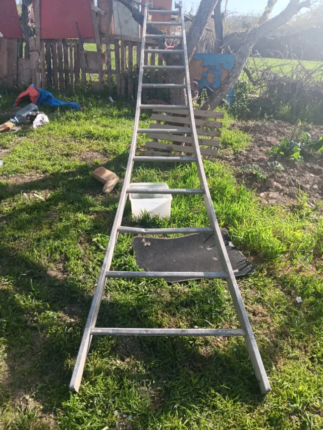 Escalera de aluminio de gran tamaño, ideal para trabajos en altura. - Material: Aluminio - Diseño robusto y ligero