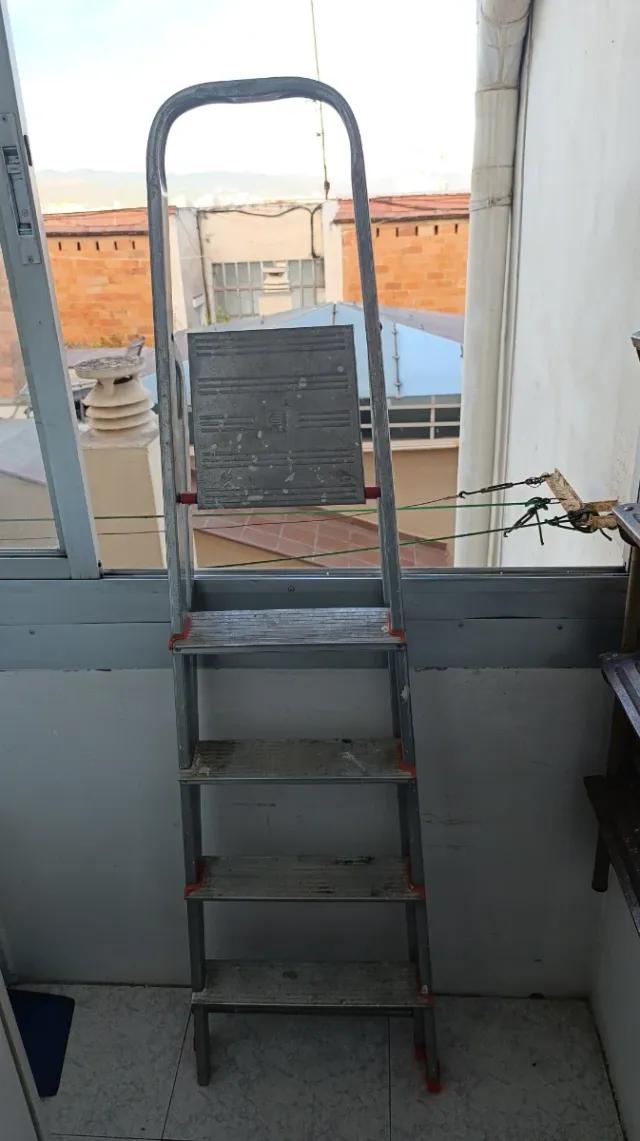 Detalles del productoEscalera de aluminio de cuatro peldaños, ideal para tareas del hogar o pequeñas reparaciones. Es plegable y fácil de almacenar.