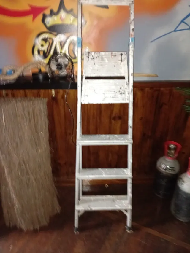 Escalera de mano metálica, ideal para trabajos en casa o en el jardín. Es fácil de plegar y guardar. - Material: Aluminio - Número de peldaños: 4 - Diseño plegable