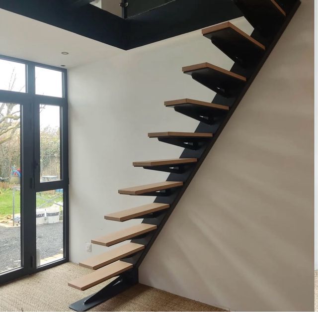 Fabricamos e instalamos escaleras con estructura metálica y peldaños de madera, con o sin barandilla.