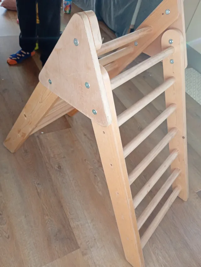 Escalera Pikler de madera para el desarrollo motor de los niños. Ideal para jugar y trepar en casa. - Fabricada en madera. - Diseño triangular.