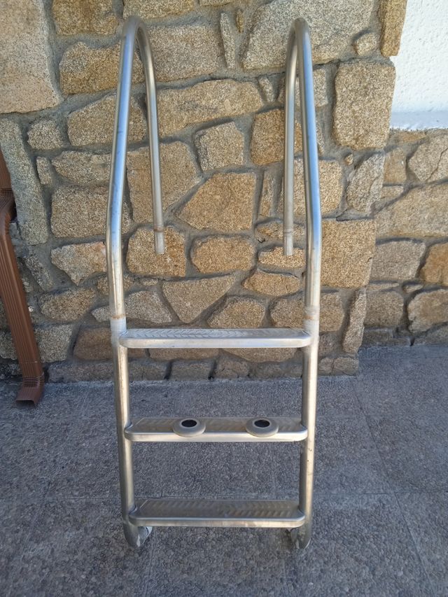 Escalera piscina metal plateada