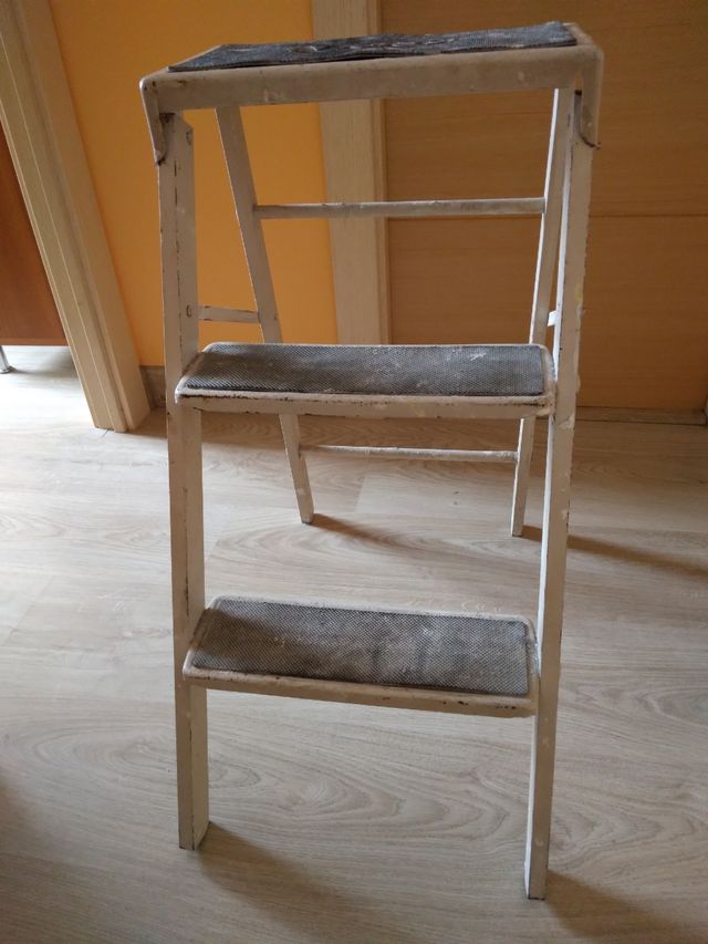No es de aluminio, pesa. Sucia de restos de pintura. 65cm alto, 34cm anchoa