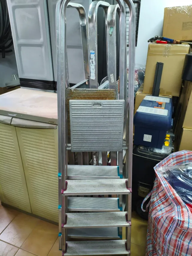 Detalles del productoEscalera plegable de aluminio, ideal para tener en casa o para trabajos puntuales. Es ligera y fácil de guardar.
