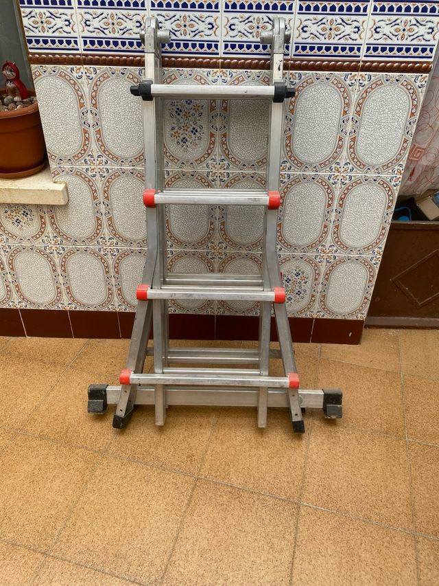 Detalles del productoEscalera plegable de aluminio, ideal para trabajos en casa o en el jardín. Su diseño permite un fácil almacenamiento.