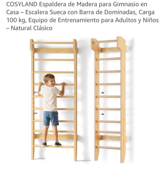 Escalera sueca de madera de la marca COSYLAND, ideal para gimnasio en casa. Perfecta para entrenamiento de adultos y niños.