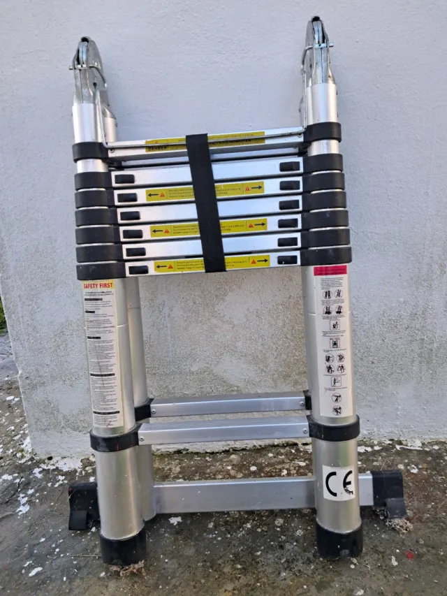Detalles del productoEscalera telescópica de aluminio, compacta y fácil de transportar.