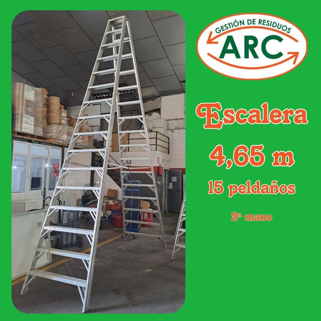 Detalles del productoSe vende escalera de aluminio de 4,65 metros de altura, con 15 peldaños.