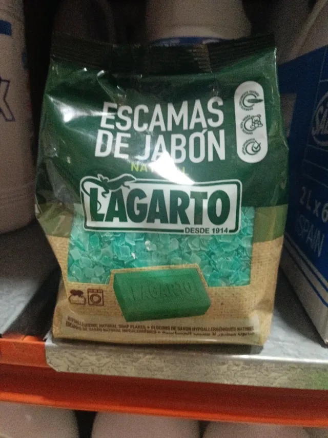 Paquete de escamas de jabón Lagarto, ideal para la colada. - 400 gramos - Jabón natural en escamas. - Marca: Lagarto. - Hasta fin de existencias