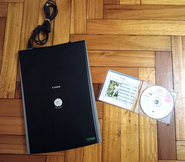 Escáner plano Canon LiDE 25 en color negro. Incluye CD de instalación con software.
