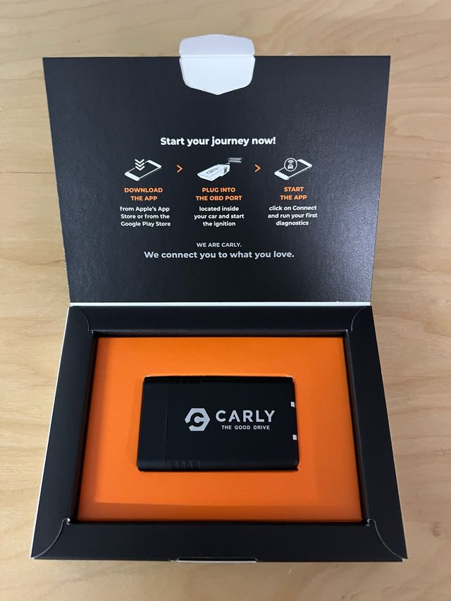 Detalles del productoEscáner OBD de la marca Carly. Permite conectar tu coche a la aplicación para realizar diagnósticos.