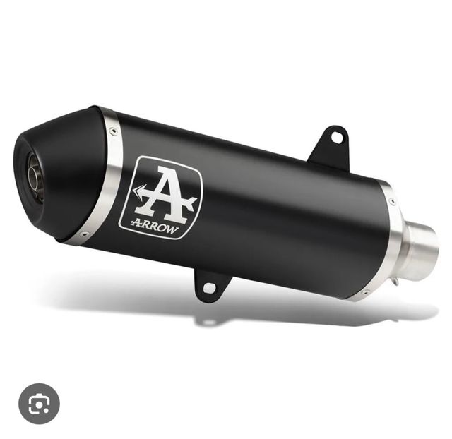 Escape Arrow para Honda Forza 125 del año 2024. Fabricado en aluminio negro con detalles plateados.