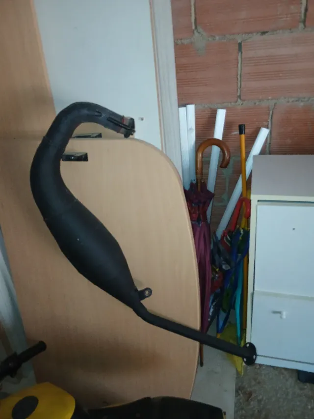 Sistema de escape para motocicleta en color negro. Modificado y soldado por profesional - Fabricado en metal.