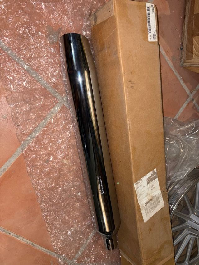 Escape cromado para Harley Davidson. Pieza de repuesto con acabado brillante. - Material: Acero cromado. - Diseño: Tubo recto.