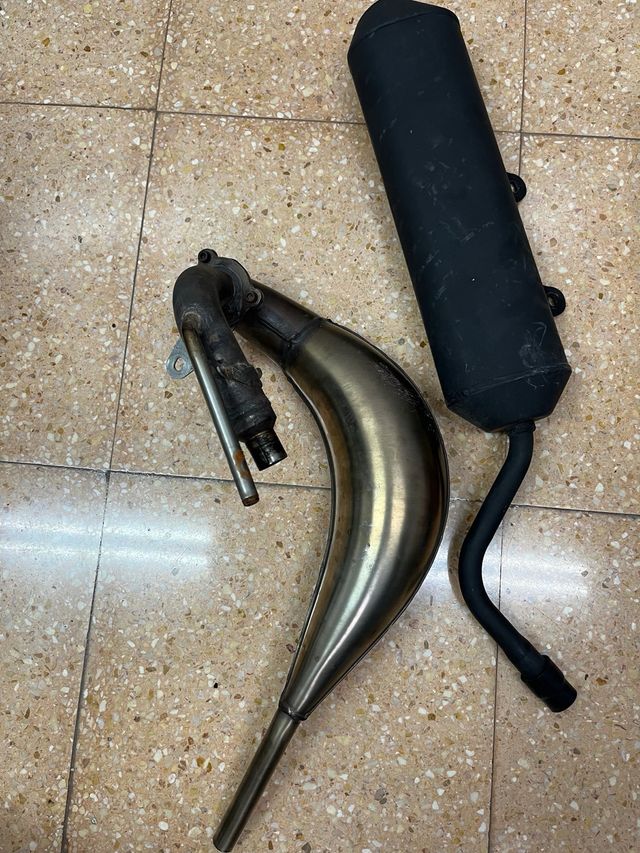 Se vende escape completo de la marca MRT para moto. - Fabricado en metal. - Incluye colector y silenciador.