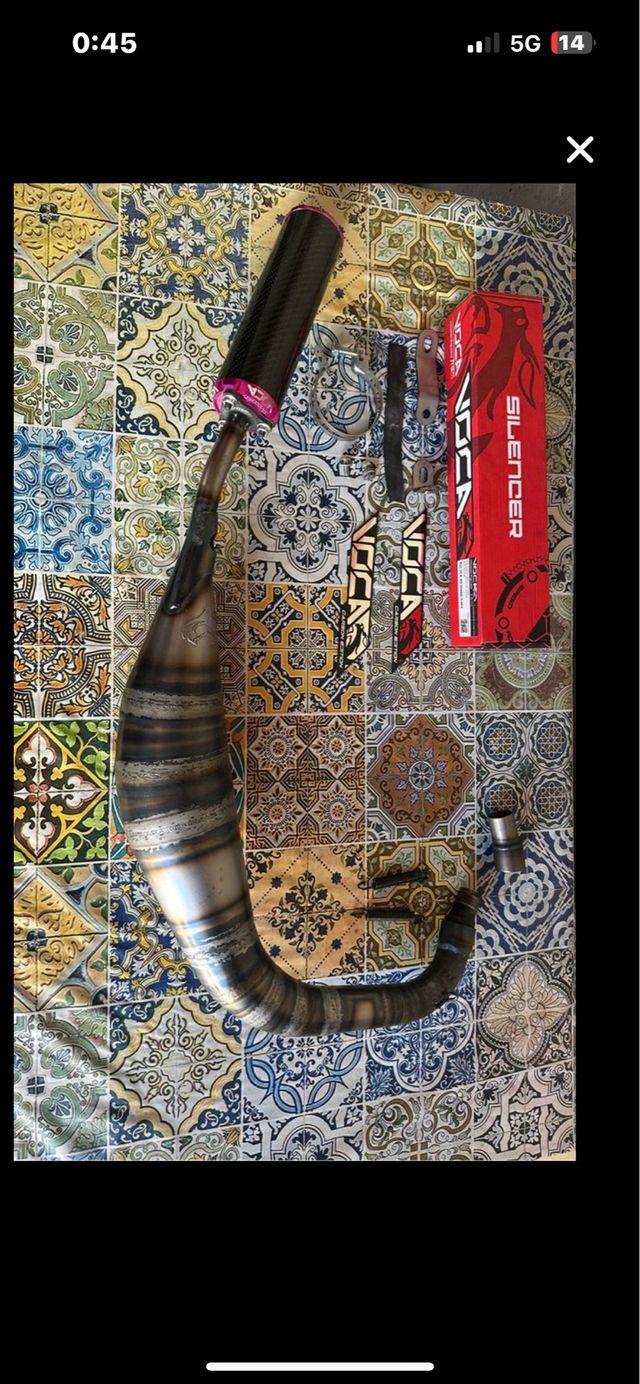 Detalles del productoEscape Voca para motos de 70cc u 80cc. Incluye silenciador de carbono.