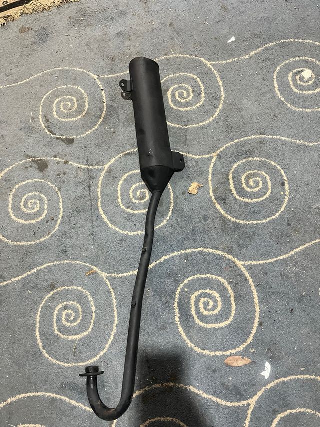 Sistema de escape completo para quad Yamaha Breezer 125. - Fabricado en metal negro. - Diseño curvo con salida inferior.