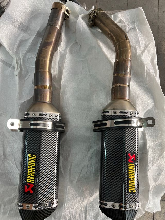 Detalles del productoVendo colas de escape Akrapovič en carbono para yamaha r1 2007-2008 no originales, con posibilidad de adaptación a cualquier otra moto, muy buena calidad y en perfecto estado.