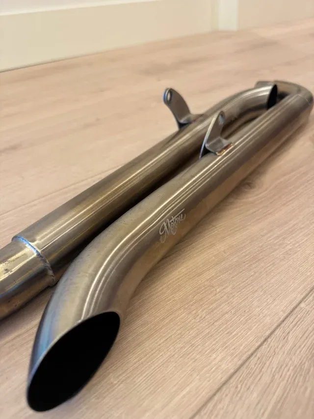 Detalles del productoSistema de escapes de la marca Motone para Triumph Street Twin. Fabricados en acero inoxidable con un acabado pulido.