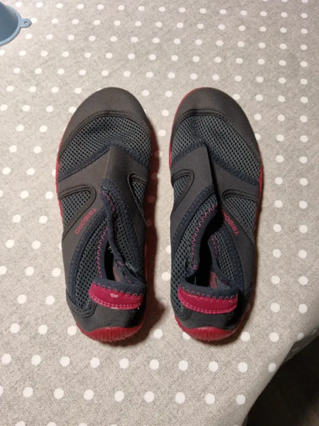 Detalles del productoEscarpines de la marca Tribord en color gris y detalles en fucsia. Perfectos para actividades acuáticas.