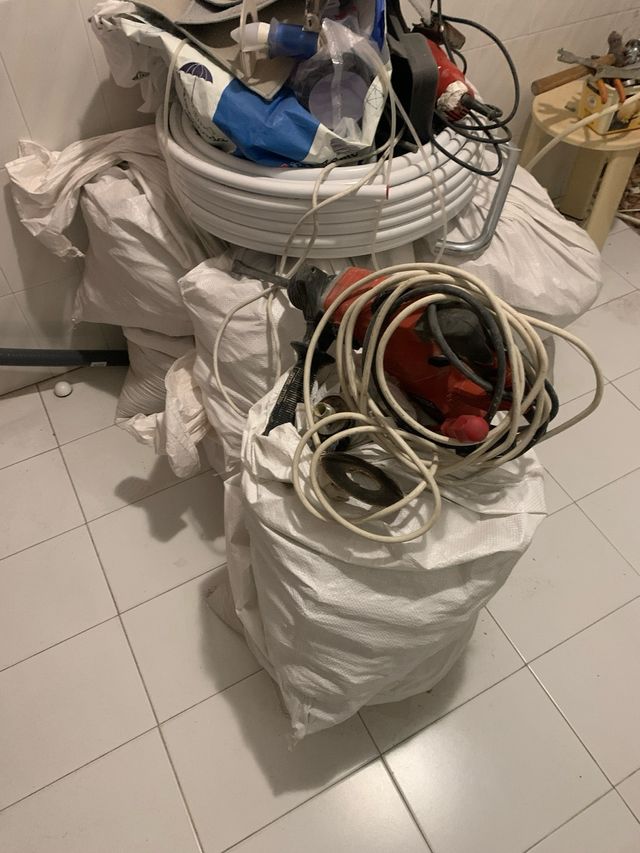 escombros y materiales de construcción variados. - Sacos de escombros. - juego bañera inidoro bidet y lavabo azul