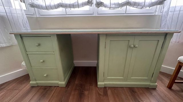 Escritorio auxiliar verde con tapa de cristal