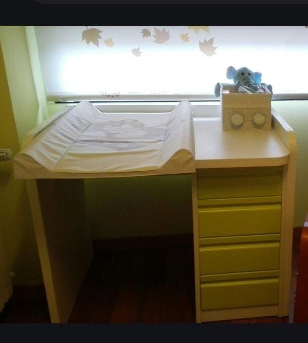 Detalles del producto4 tablones de madera de 3 cm de espesor para montar mueble práctico para el cuidado del bebé y, posteriormente, usarlo como escritorio.