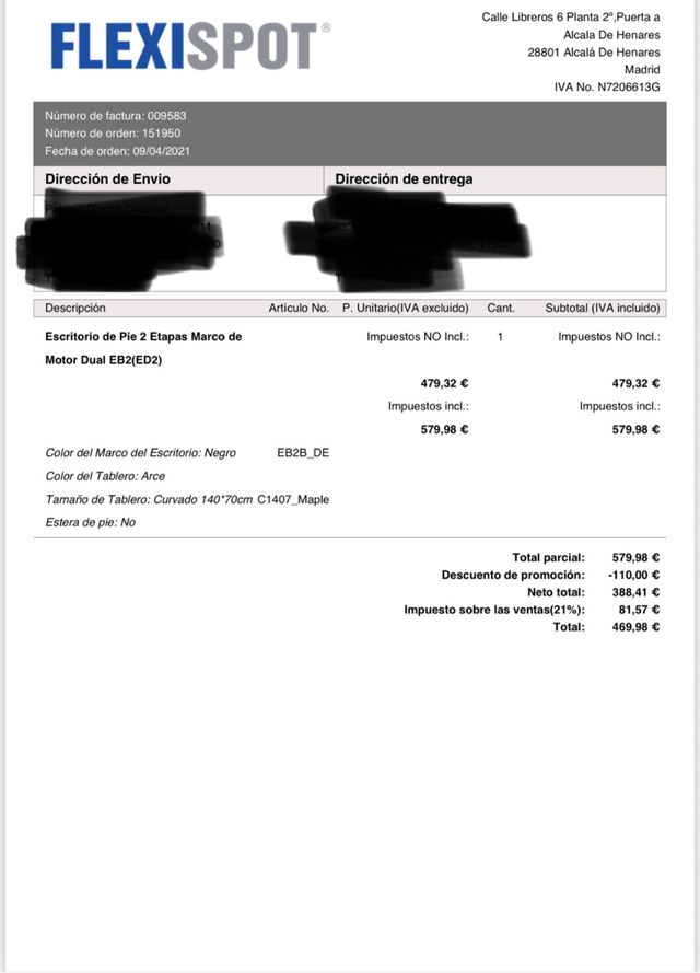Como nuevo · FLEXISPOT · Negro · Metal y Madera