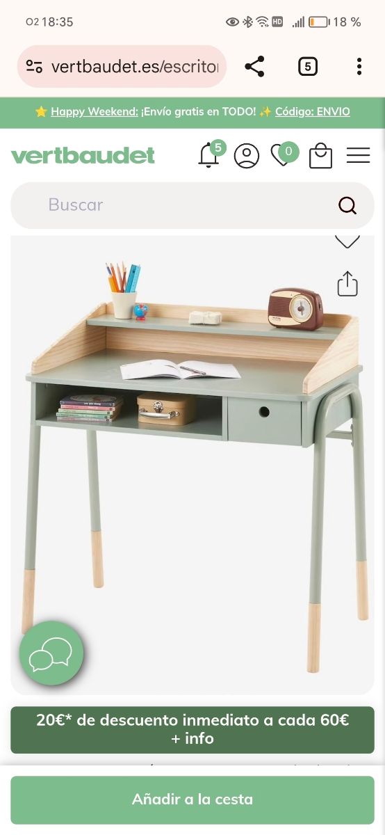 Como nuevo · vertbaudet · Beige y Verde · Metal y Madera