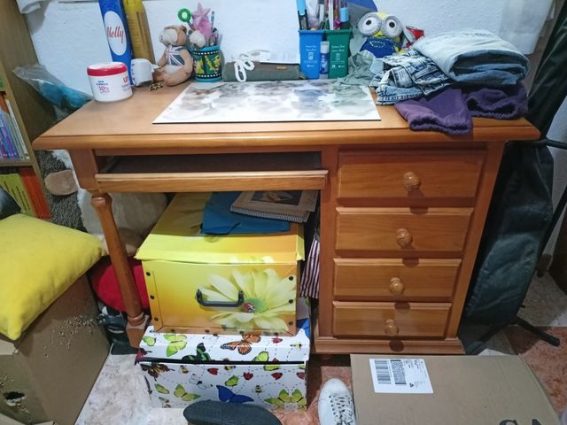 Detalles del productose vende escritorio de madera, bien conservado, sin apenas uso. 4 cajones funcionales.