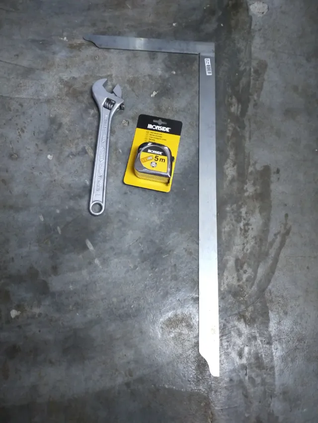 Conjunto de herramientas para mediciones y ajustes. - Escuadra metálica. - Cinta métrica Ironside de 5m. - Llave inglesa ajustable.