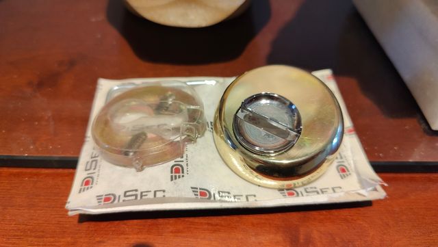 Escudo de seguridad Disec, nuevo y en su embalaje original. ALTA SEGURIDAD PARA TU BOMBIN EUROPEO - Acabado en latón. - Diseño moderno y robusto.