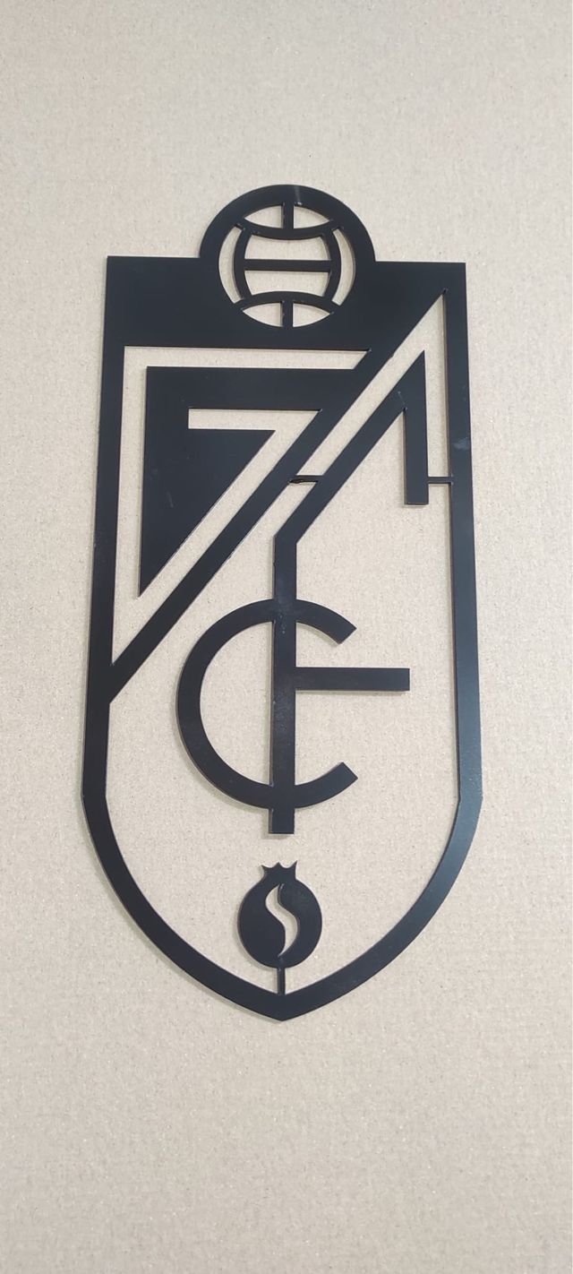 Escudo decorativo del Granada Club de Fútbol.36x16 - Diseño metálico negro.También se puede hacer en otros materiales y colores - Representación del escudo oficial.