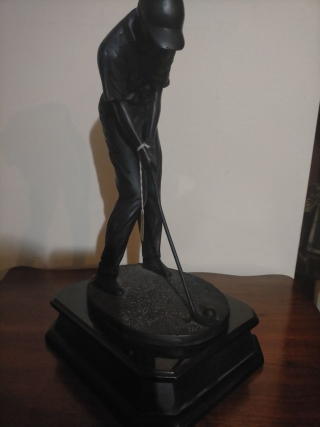 Escultura deporte movimiento Swing de Golf golpeando la bola con encanto de 44cm de alto en bronce y su base de mármol de 23*20. De 9,4 kgr de peso.