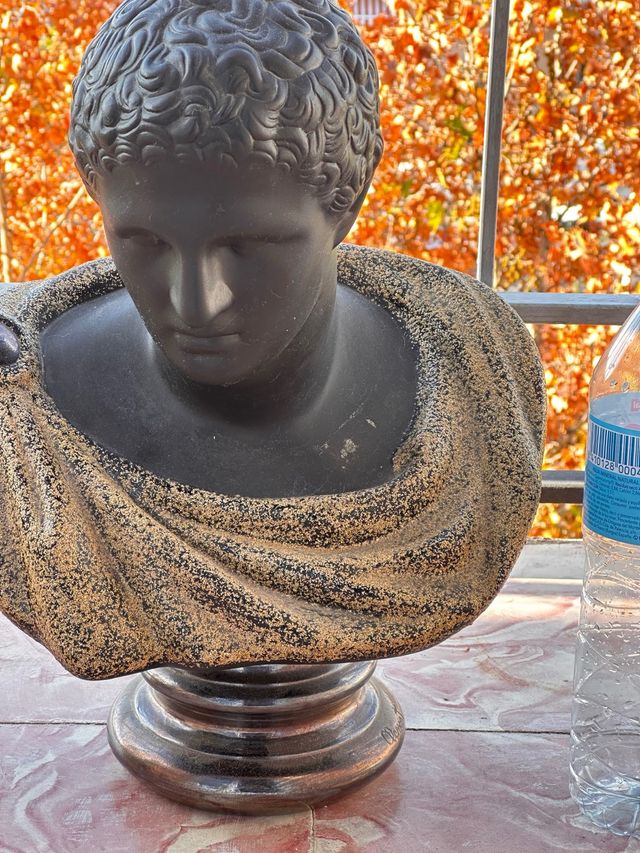 Detalles del productoBusto de estilo romano, con detalles en dorado y base decorada. La firma del artista CLEMENT está presente.
