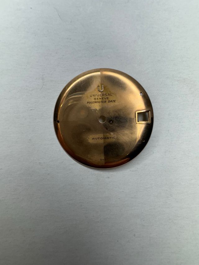 Detalles del productoSe vende dial/esfera hecha por la prestigiosa marca Singer para el reloj Universal Geneve Polerouter Date Automatic, la esfera es de oro de 18k. En Este caso es compatible con los calibres 215 y 218-2. Pesa 3,71 gramos, no se vende al peso.