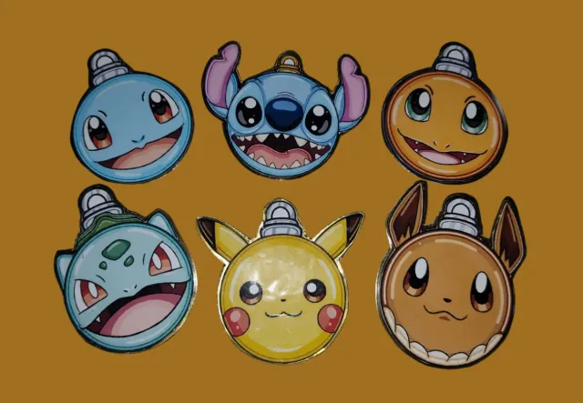 Detalles del productoConjunto de seis esferas decorativas con diseños de personajes.