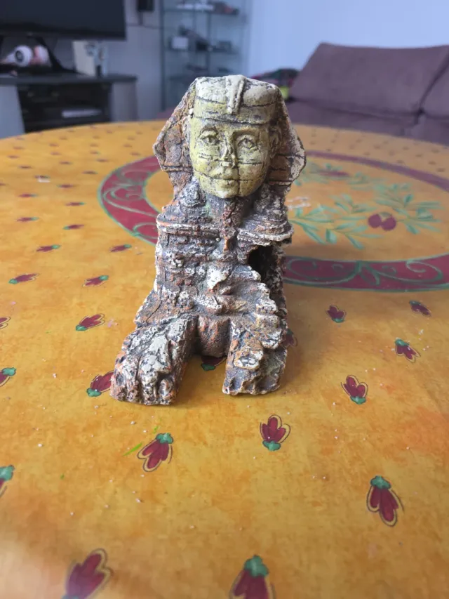 Figura decorativa con forma de esfinge, ideal para acuarios. - Diseño detallado. - Material resistente para ambientes acuáticos.