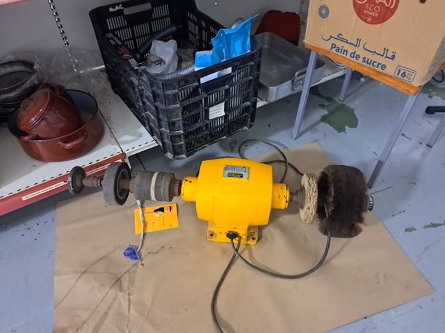 Se vende esmeriladora de banco en color amarillo. - Motor eléctrico. - Eje con discos de pulido y lijado. - Base de metal.