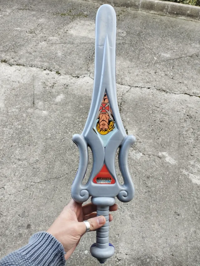Detalles del productoEspada de juguete vintage de Masters of the Universe, con la imagen de He-Man.