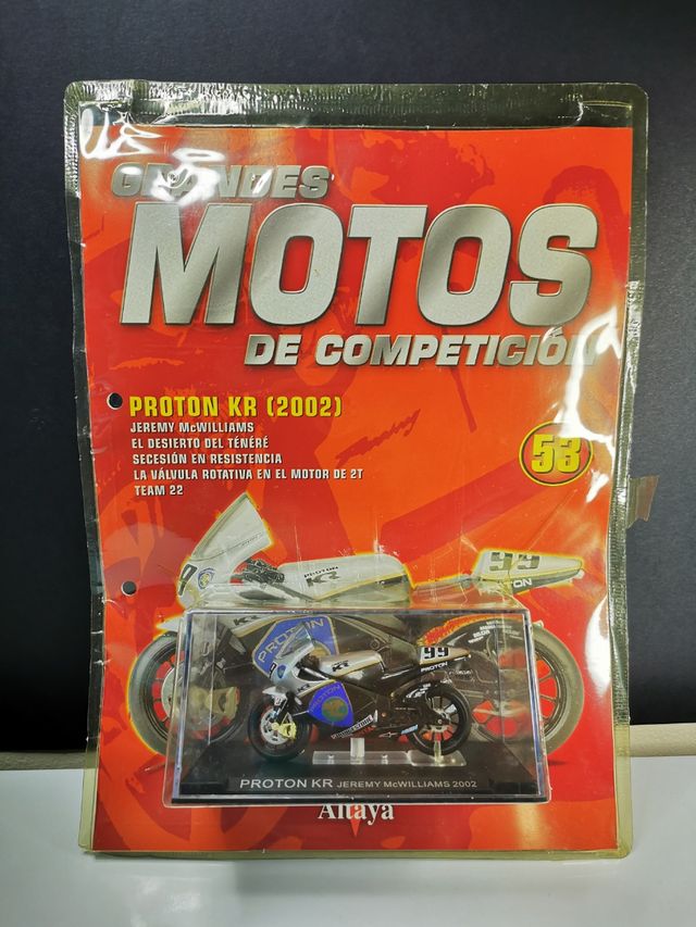 Detalles del productoMoto a escala 1/24 Proton KR de Jeremy McWilliams temporada 2002 la moto se encuentra completamente cerrada en su blister des de hace 20 años aproximadamente con el fasciculo incluido. La moto está en perfectas condiciones con todo lujo de detalle con su base y su vitrina incluidas. Modelo difícil de encontrar y más en estas condiciones.