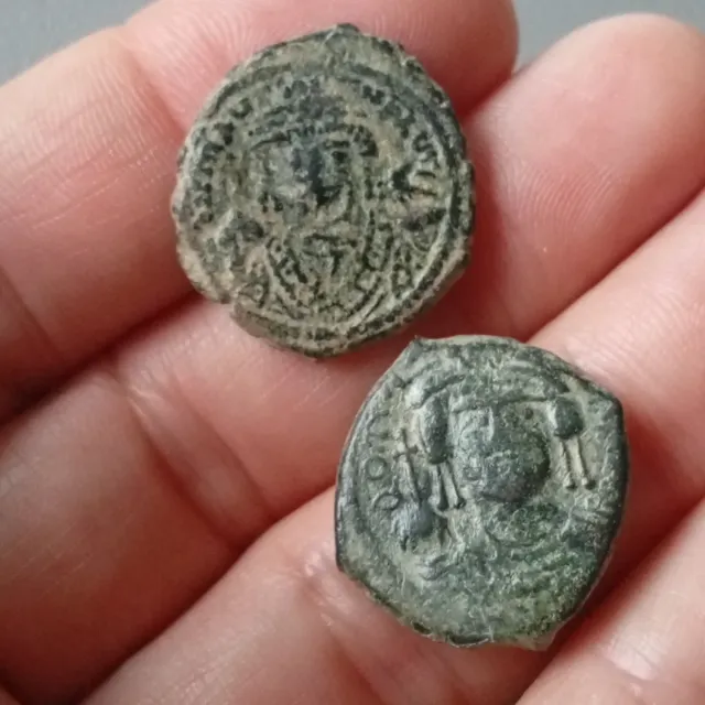 Detalles del productoEspectacular Lote 2 monedas Bizantimas originales. Acuñadas a martillo en bronce.