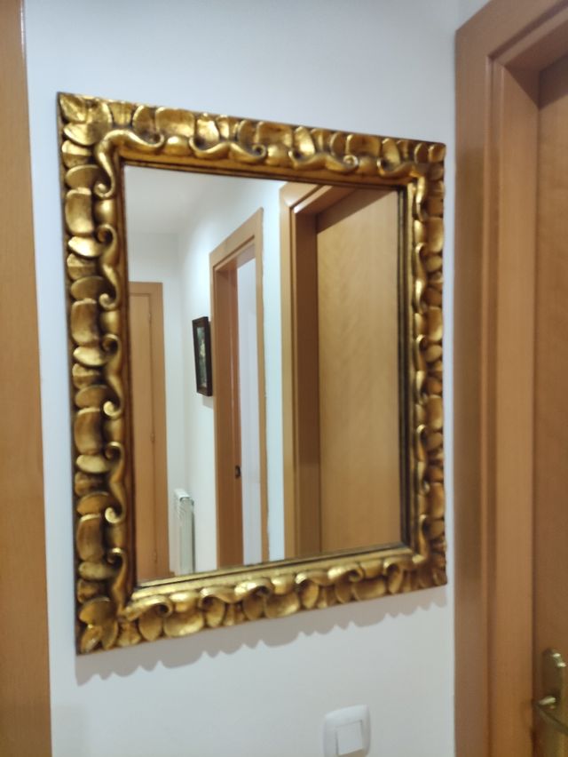 Detalles del productoAntiguo espejo con marco en color oro , pendiente de poner las medidas. Recogida en mano Terrassa . Tamaño mediano , ideal para cuarto de baño . Muchas más antigüedades y objetos de decoracion. Recogida en mano Terrassa . Medidas 75cmx60cm