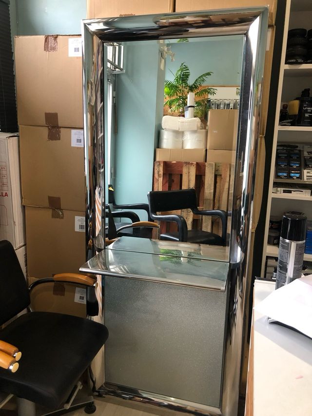 Espejo con estante metálico peluqueria
