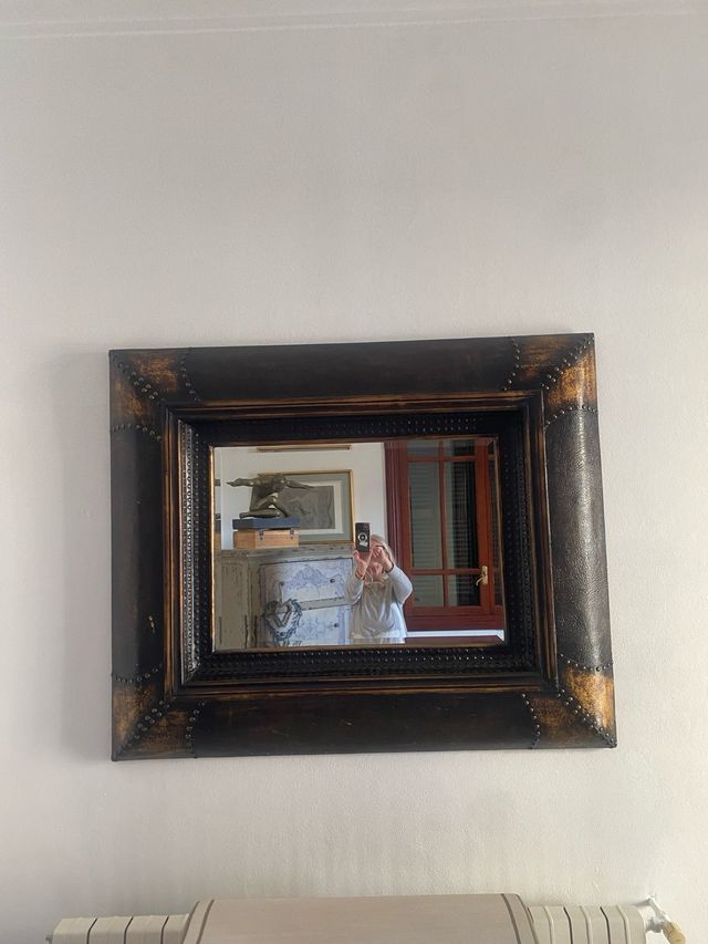 Espejo decorativo metal y cuero