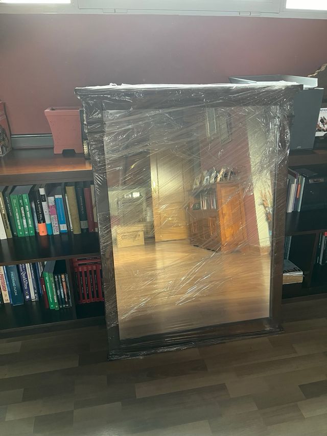 Espejo grande con marco de madera en perfecto estado. Medidas: 108 cm (alto) x 80 cm (ancho) (85 cm en la cornisa superior)