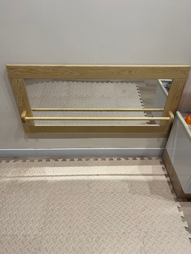 Espejo montessori de madera con barra para actividades. Medias 106x52 cm (largo x alto)